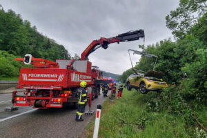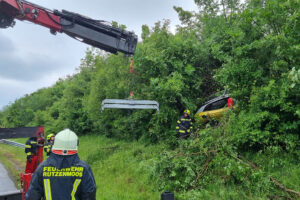 „Bei unserem Eintreffen konnte der Fahrzeuglenker entgegen der Erstmeldung bereits das Fahrzeug verlassen und wurde vom Roten Kreuz und dem Notarzt versorgt. Erst nachdem wir Sträucher entfernt hatten, konnten wir den verunfallten PKW mit unserem Ladekran bergen und auf das angeforderte Abschleppauto heben“, berichten die Einsatzkräfte. Nach etwa einer Stunde konnte dieser Einsatz beendet werden.