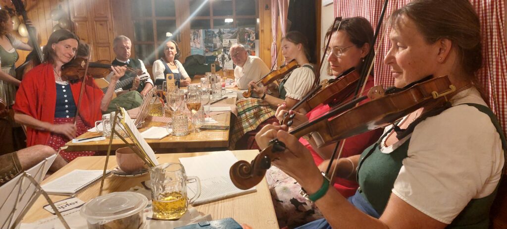 Vollzählig in der Besetzung mit Geigen, Kontrabass, Zug, Gitarre und Zither, griffen die Musikanten auf die Tasten und Saiten. Den Freunden und Gästen wurden musikalische Leckerbissen aus dem Salzkammergut mit Freuden geboten.