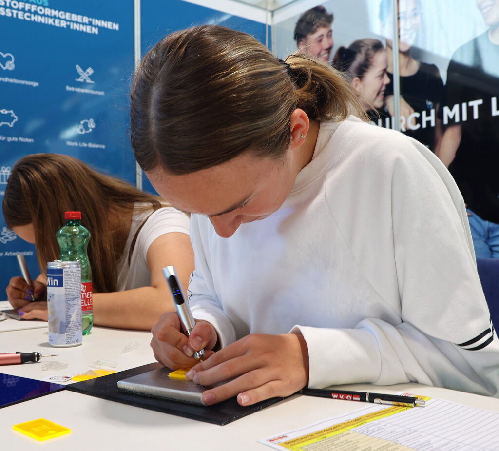 „Wir sind für die Aussteller sehr froh, dass auch der Samstag so gut angenommen wurde. Denn die intensiven Gespräche mit den Eltern und Jugendlichen über die Karrieremöglichkeiten geben der Lehrlings- und Bildungsmesse einen hohen Mehrwert“, freut sich der Obmann der WKO Vöcklabruck, Stephan Preishuber, über den erfolgreichen Event. Präsentiert wurden den Besuchern mehr als 80 (!) verschiedene Lehrberufe – die Jugendlichen konnten auch selbst ihre Fähigkeiten vor Ort testen, von Löten über Schrauben bis zu Gravieren, Fräsen und Malen.