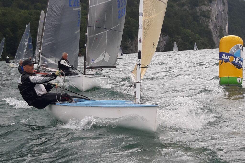 Ebenfalls am Start – die aufstrebende Einhandklasse der D-One Segler. Bei den modernen „Devoti“ D-One, bei der zusätzlich ein Gennaker unter Vorwind Können und Sportlichkeit verlangt, trafen sich 14 Segler an der Startlinie. Auch hier waren einige Teilnehmer bei Windstärken bis 5 mehr mit Bootshandling beschäftigt. Vor allem bei Vorwind kam es (für die verbliebenen) Segler zu zahlreichen Kenterungen. Am Ende machten es sich die Routiniers wieder unter sich aus, mit dem besseren Ende für Franz Urlesberger (UYC Wg). Der ehemalige Laser-Crack konnte sich im Heimrevier knapp vor Thomas Dohnal (UYC Ns) und Jörg Deimling (SCA) behaupten und erneut den Öst. Meistertitel feiern.