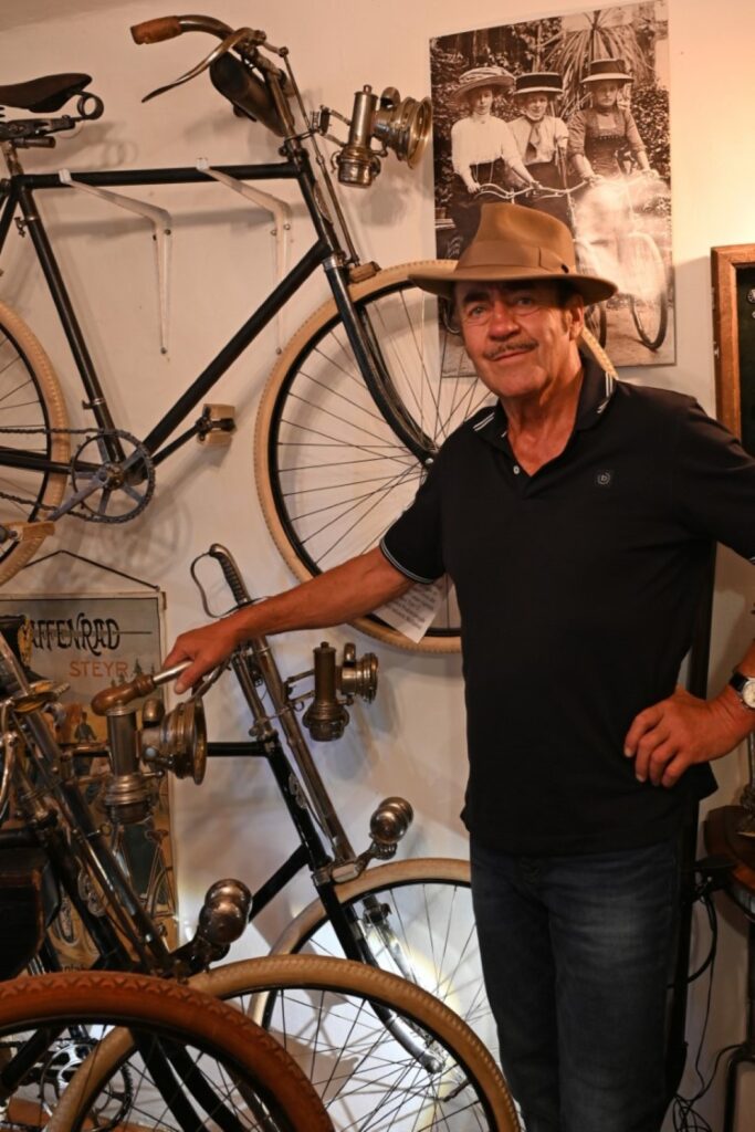 Ein besonderes Highlight der Sammlung ist das Waffenrad „Typ12“ aus dem ersten Produktionsjahr 1897 in Steyr, das älteste bekannte Waffenrad. „Waffenrad wurde es genannt, weil Josef Werndl aus Steyr zuerst Waffen produzierte und dann in den Bau stabiler Fahrräder investierte“, erläutert Neumayer und fügt hinzu, dass es noch viele weitere interessante Informationen gibt.