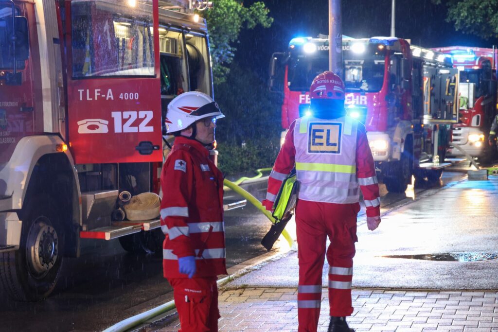 Nach und nach wurden weitere Feuerwehren an die Einsatzstelle beordert, sodass zwischenzeitlich Kräfte von fünf Feuerwehren, darunter zwei Teleskopmastbühnen und eine Drehleiter im Einsatz standen. Ebenso im Einsatz standen mit mehreren Fahrzeugen der Rettungsdienst sowie Notarzt und mehrere Streifen der Polizei.