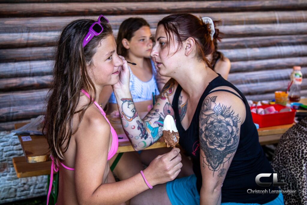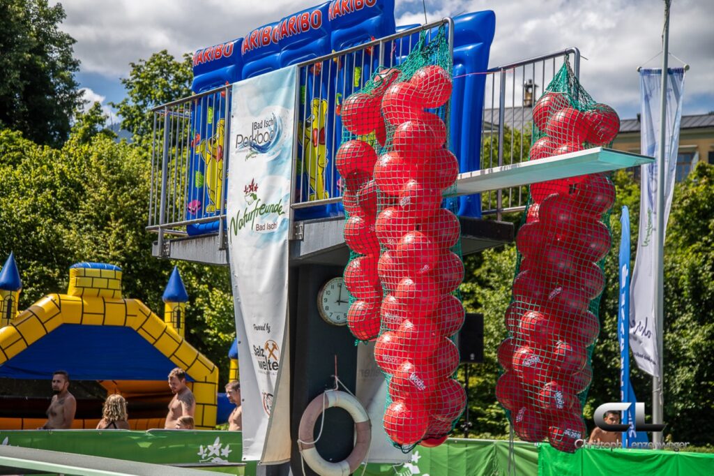 Für die kleinen Gäste gab es eine große Hüpfburg, auf der sie sich austoben konnten. Außerdem wurden kostenlos Wasserbälle und Luftmatratzen verteilt, die für zusätzlichen Badespaß sorgten. Die Ischler Tanzhexen boten in einer gemütlichen Almhütte professionelles Kinderschminken an. Viele Kinder freuten sich über bunte Gesichter und fantasievolle Verzierungen.