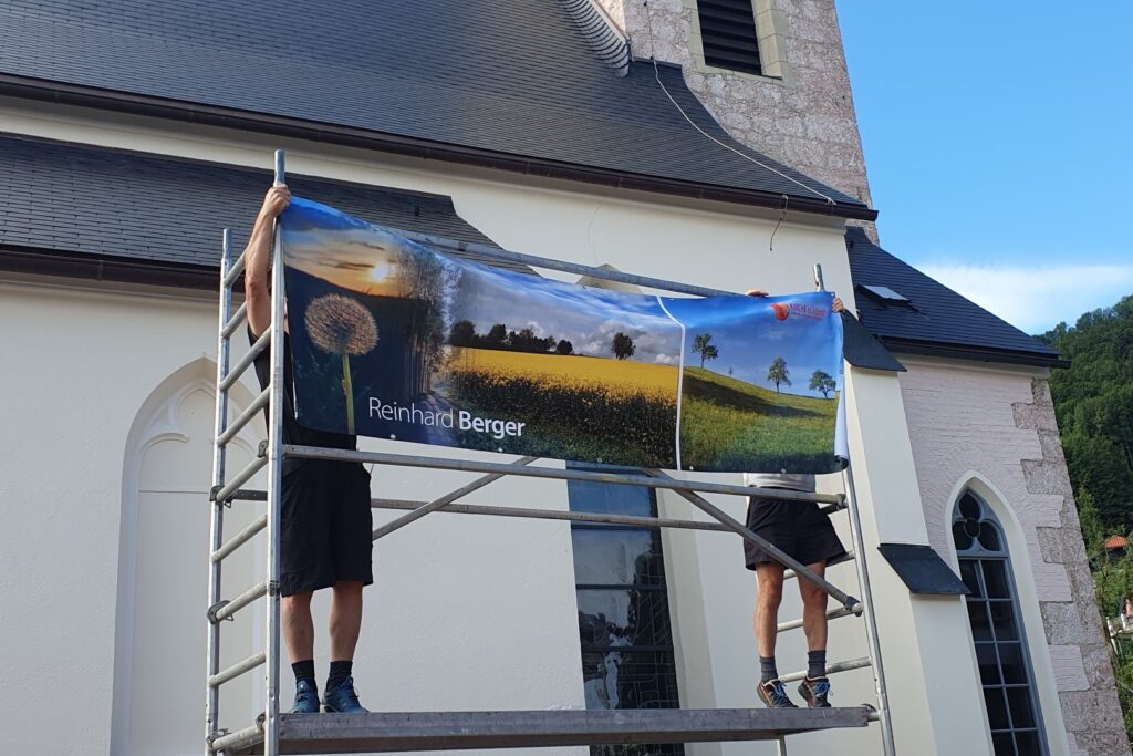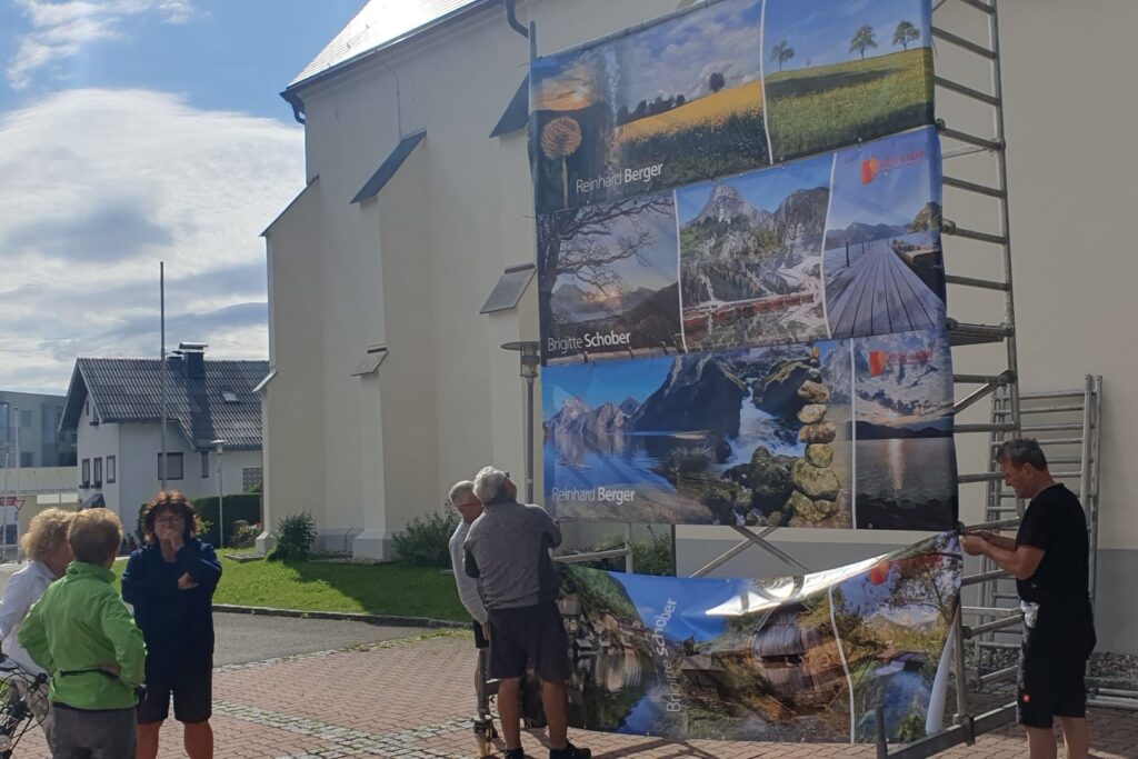 Der Verein der Freunde der Pfarre Pinsdorf ist schon seit 20 Jahren dafür bekannt, ungewöhnliche Aktionen zu starten, wie eine Kabarettbühne oder ein Vogelscheuchenprojekt oder eine Hutparade. Nun bietet der Verein 2 Pinsdorfer:innen, Reinhard Berge und Brigitte Schober, beides Hobby-Fotograf:innen, eine Bühne in der Öffentlichkeit, um ein paar Fotos zu präsentieren. Den ganzen Monat Juli werden Fotos von den beiden im Baugerüst, durch die Scharnsteiner-Fahnenfabrik auf Transparente gedruckt, gestaltet von StolliGraphic, am Kirchenplatz gezeigt. Durch die Unterstützung des Siedlervereins Pinsdorf ist dieses Projekt ermöglicht worden. Die Fotos zeigen Orte aus Oberösterreich, von Hallstatt angefangen über den Traunsee bis hin zum Schiederweiher in Hinterstoder. Herrliche Aufnahmen, die zum Staunen und Bewundern einladen wollen.