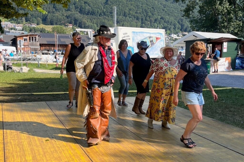 War der Tag 1 des Countryfestes am Seebahnhof in Gmunden schon ein riesen Erfolg, so übertraf Tag 2 am 27.7.2024 wohl alle Erwartungen. Bereits am frühen Nachmittag füllte sich das Veranstaltungsareal am Seebahnhof mit Besuchern und als die Band „Still Country“ als erste Gruppe des Tages musikalisch das Countryfest eröffnete, waren schon hunderte Plätze mit Countryfans gefüllt. Und der Zustrom riss nicht ab, am Abend betrat dann die Spitzenband „Cat Lion Band“ die Bühne. Da war das Publikum nicht mehr zu halten. Das Organisationsteam des Traunsee Countryfestes rund um ÖAAB-Obmann Maximilian Attwenger und Manfred Andessner hat alle Register gezogen und sorgte mit Getränkebars, in der auch Bürgermeister Stefan Krapf beim Ausschenken ins Schwitzen kam und einer kulinarisch reichhaltigen Küche für das leibliche Wohl. Viele Ehrengäste aus Politik und Gesellschaft, darunter auch NR-Abgeordnete Bettina Zopf ließen es sich nicht nehmen und besuchten das gelungene Fest am Seebahnhof.