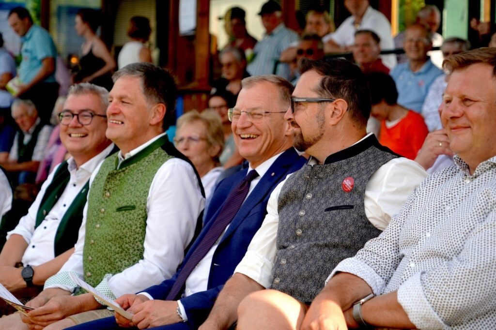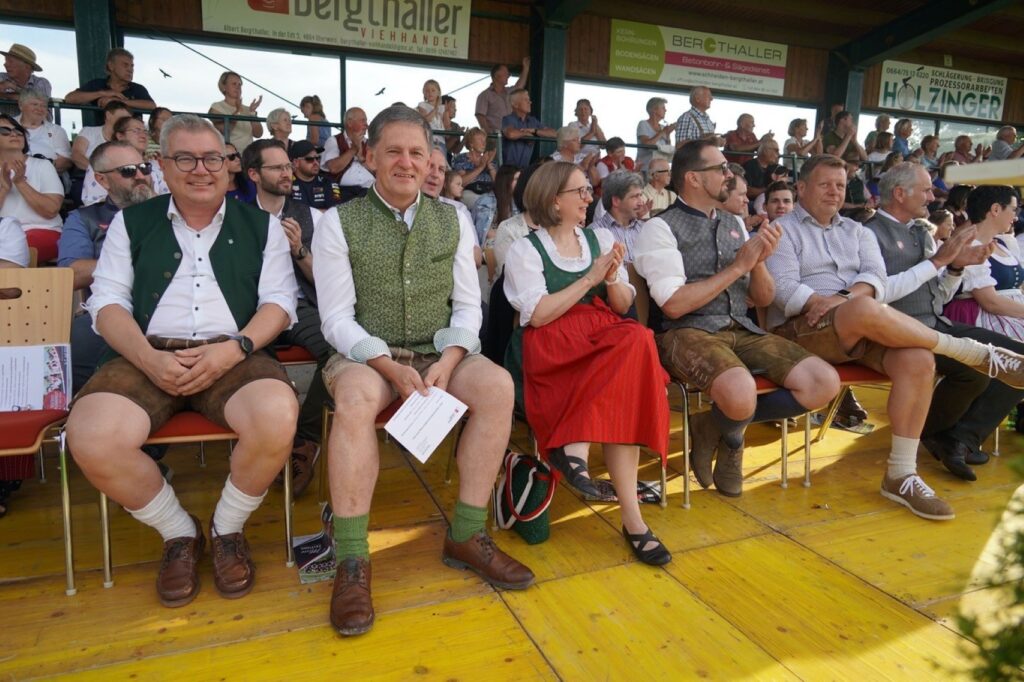 Bereits der erste Tag der Veranstaltung „Musiktage Gschwandt“ von 5.-7.7.2024 war ein Riesen Erfolg. Der Veranstalter MVG-Musikverein Gschwandt unter Obmann Thomas Gillesberger hat mit seinem Team alle Register gezogen und am Fußballplatz der UNION Gschwandt und in der Reithalle optimale Voraussetzungen für ein Musikspektakel der besonderen Art zu schaffen. Am Freitag 5.7.2024 war es endlich soweit und die Musiktage Gschwandt wurden um 17:00 Uhr eröffnet. Moderator Johann Pamminger, der auch Ehrenmitglied der MVG ist, konnte unzählige Ehrengäste, darunter Landeshauptmann Mag. Thomas Stelzer, LA und Bgm. von Scharnstein Rudi Raffelsberger, stellvertretend für viele Bürgermeister des Bezirkes Fritz Steindl als Hausherr, Pfarrassistentin Anna-Maria Marschner, Bezirks Ehrenobmann Kons. Jörg Schusterbauer, alle anwesenden Gemeindevertreter aus Gschwandt und natürlich eine gewaltige Anzahl von musikbegeisterte Zuschauer herzlich begrüßen.
