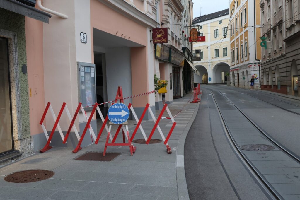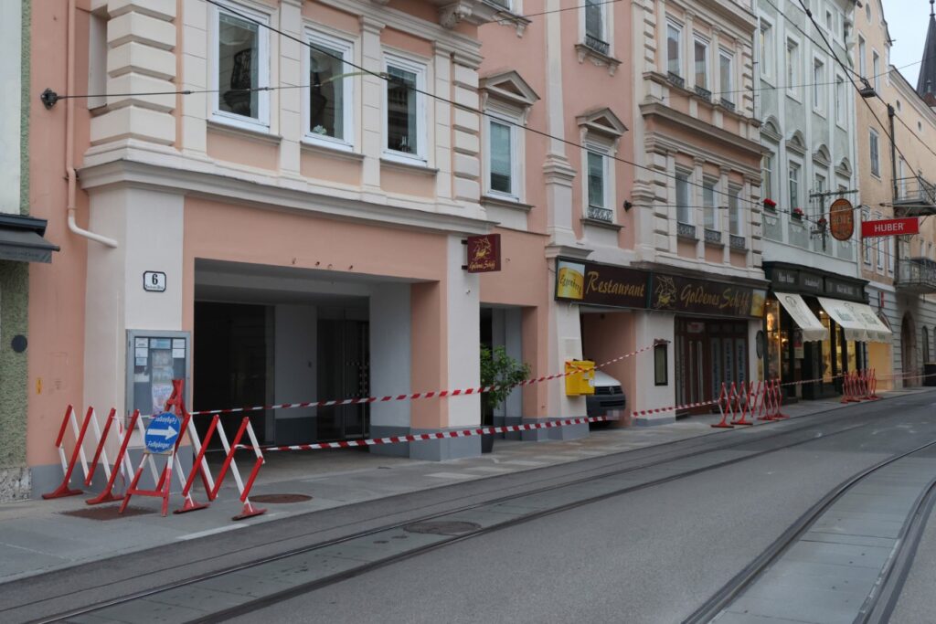 In Gmunden musste Montagabend die Stadtdurchfahrt gesperrt werden, nachdem Teile einer Fassade abgestürzt sind. Auch die Straßenbahnlinie war vorübergehend eingestellt.