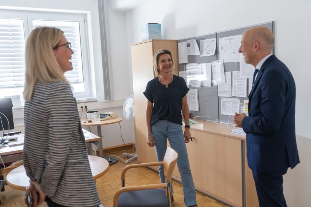 Im Anschluss daran erhielt der Minister die Gelegenheit, sich bei einem Rundgang ein Bild von der Arbeitsweise der Geschäftsstelle zu machen und unterhielt sich auch mit Mitarbeiterinnen und Mitarbeitern, um einen Einblick über deren Beratungsalltag zu erhalten.