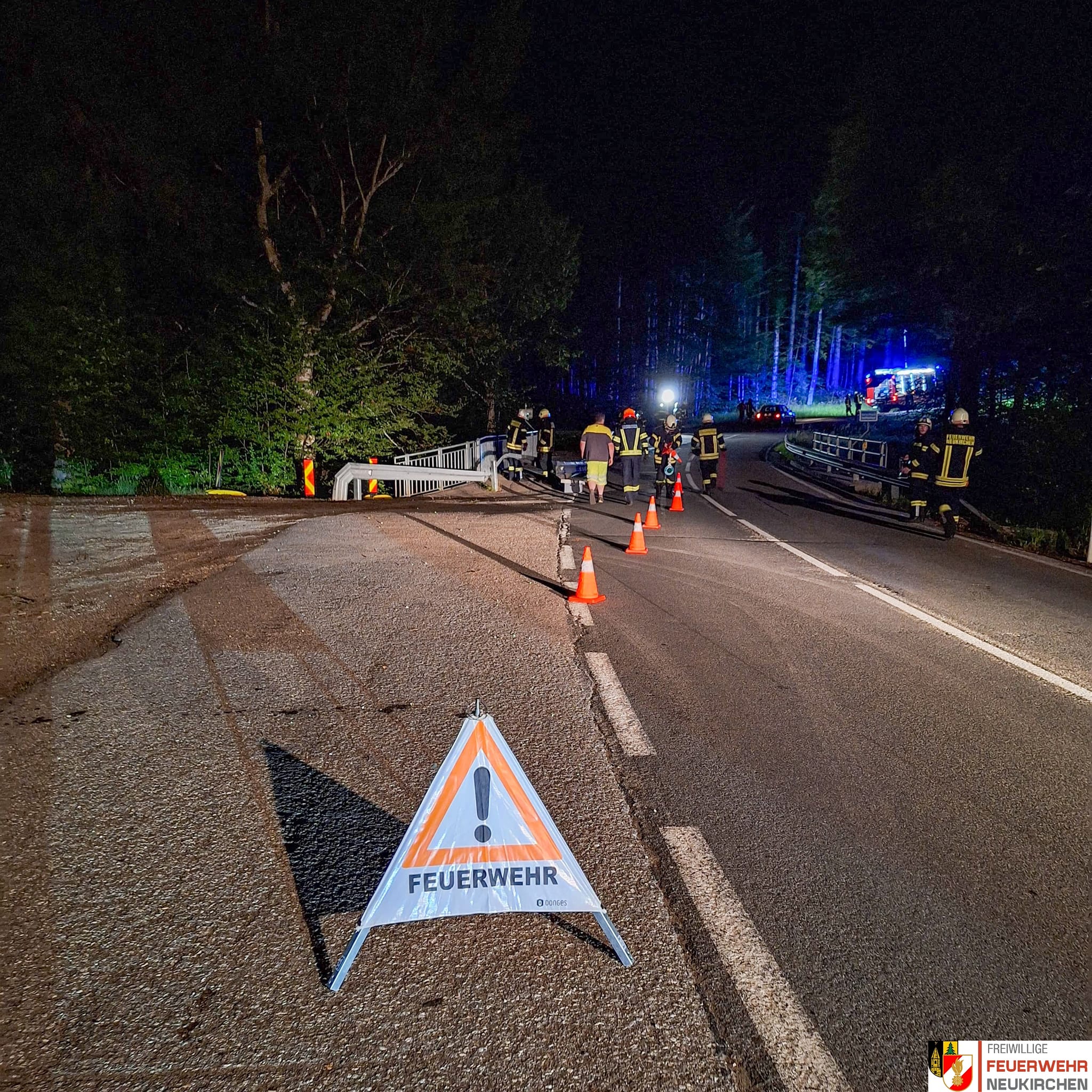 Das Fahrzeug wurde dabei so schwer beschädigt, dass eine Weiterfahrt nicht mehr möglich war. Ausgelaufene Betriebsmittel wurden mittels Ölbindemittel von der FF Neukirchen beseitigt.