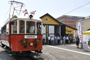 Der Festakt begann im Franz-Josef-Park, wo Karl Neumann, CEO der Stern-Gruppe, und Günter Neumann, Geschäftsführer von Stern & Hafferl Verkehr, die Gäste herzlich begrüßten. In ihren Reden betonten sie die historische Bedeutung der Gmundner Straßenbahn als Pionierprojekt in der Elektromobilität und ihren anhaltenden Beitrag zur nachhaltigen Mobilität in der Region. Günter Neumann unterstrich die Bedeutung des Jubiläums mit den Worten: „Die Gmundner Straßenbahn ist nicht nur ein Stück unserer Geschichte, sondern auch ein Symbol für unseren kontinuierlichen Einsatz für innovative und nachhaltige Mobilitätslösungen. Heute feiern wir nicht nur 130 Jahre Tradition, sondern auch 130 Jahre zukunftsorientiertes Denken.“