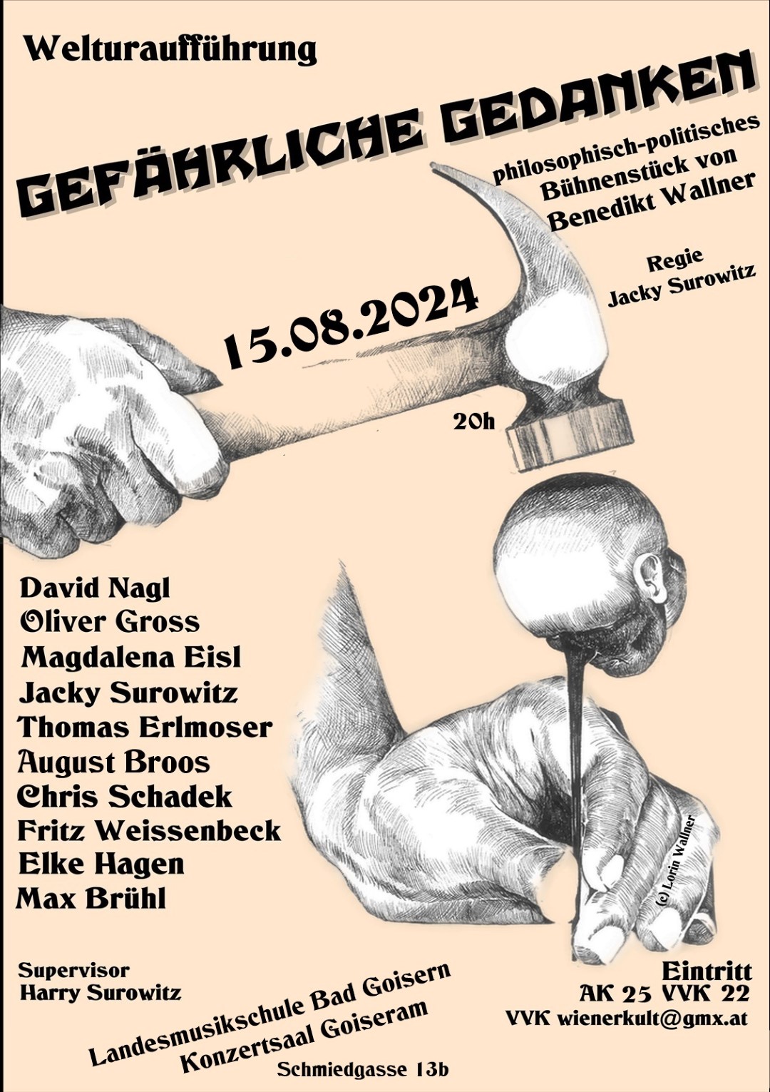 Wir freuen uns bekanntzugeben, dass wir nach unserer sehr erfolgreichen Wiener WELTURAUFFÜHRUNG des politisch philosophischen Theaterstücks