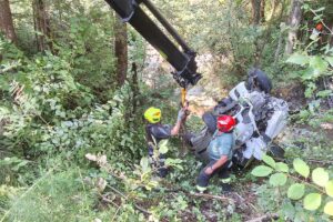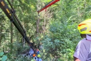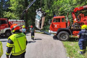 In weiterer Folge war der Einsatz von zwei Feuerwehr-Bergekränen notwendig, um das Unfallfahrzeug aus dem Bach wieder nach oben zur Straße hieven zu können. Dort wurde der PKW dann von einem Abschleppdienst übernommen und abtransportiert, berichtet die Feuerwehr.
