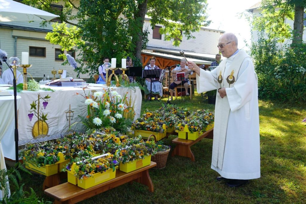 Am Feiertag Maria Himmelfahrt 15.8.2024 organisierte die Goldhauben-, Kopftuch- und Hutgruppe Gschwandt einen „Tag der Tracht“ mit Kräuterweihe gemeinsam mit der Pfarre Gschwandt. Bereits um 6:30 Uhr früh kamen viele fleißige Hände und bereiteten im Freien hinter der Pfarrkirche Gschwandt alles für eine heilige Messe vor. Der Wettergott half entsprechend mit, Sonne mit Wolken lachten am Himmel und gegen 9:00 Uhr Vormittag strömten aus allen Himmelsrichtungen die Kirchgänger herbei. Die heilige Messe wurde von Pfarrer Alois Kainberger und Pfarrassistentin und leitender Seelsorgerin Anna Maria Marschner abgehalten. Für die musikalische Begleitung war ebenfalls äußerst stimmungsvoll gesorgt.