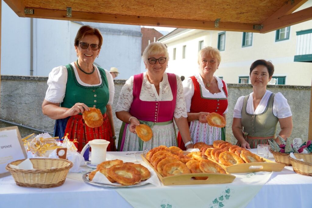 Die Frauen der Goldhaubengruppe banden in mühevoller Handarbeit die heiß begehrten Kräuterbüscherl und hatten auch unzählige Bauernkrapfen frisch gebacken. Nach Ende der heiligen Messe wurden die Standln gestürmt und alle Kräuterbüscherl und Krapfen waren im Nu ausverkauft. Ein herzliches Dankeschön an ALLE, die für diesen gelungenen und freudenreichen Tag beigetragen haben. Gschwandt ist eben Lebens,- und liebenswert, dies hat man heute wieder erleben dürfen.