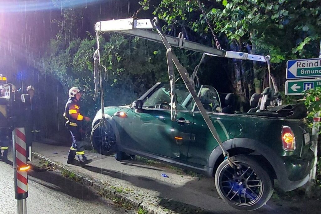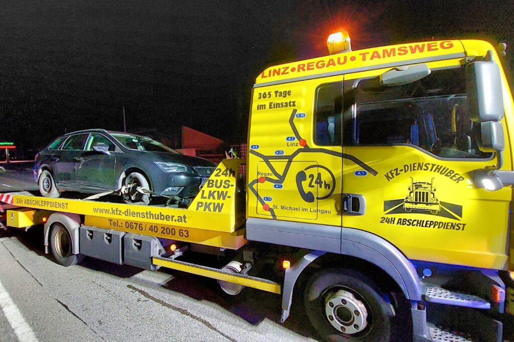 Der erste Unfall ereignete sich kurz nach 22 Uhr. Ein Pkw, der von der Pichlhofstraße kam, schaffte die Einfahrt in die Großalmstraße nicht und krachte in die Leitplanke. Das Fahrzeug war so stark beschädigt, dass eine Weiterfahrt unmöglich war. Die Feuerwehr wurde alarmiert, um den Wagen zu bergen und die Straße wieder freizugeben.
