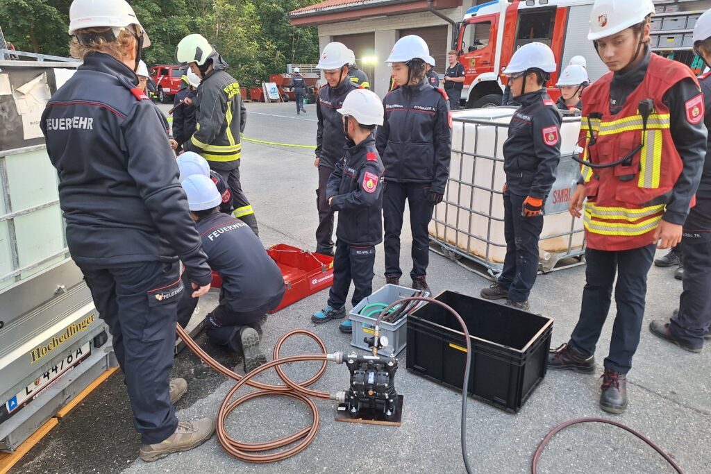 Am Freitag startete um 14:00 Uhr die Übung, mit einem Waldbrand beim Salzbergwerk in Perneck. Im Laufe der folgenden 24-Stunden folgten viele weitere Gemeinschafts- und Einzelübungen der Einheiten. Die Höhepunkte waren sicherlich: die gefährliche Stoffe Übung, bei welchem ein Behälter auf einem Anhänger abgedichtet werden musste. Gleichzeitig hatte man dafür zu sorgen, dass die Flüssigkeiten nicht in das Kanalnetz gelangen. Heiß her ging es in der Pfandler Schottergrube, wo verschieden Brandversuche durchgeführt wurden. Und ganz besonders waren heuer auch die Spiele zum Thema „Wassertransport der anderen Art“, bei welchem die Jugendlichen aller Gruppen zu Teams, je fünf Mitglieder, zusammengelost wurden.