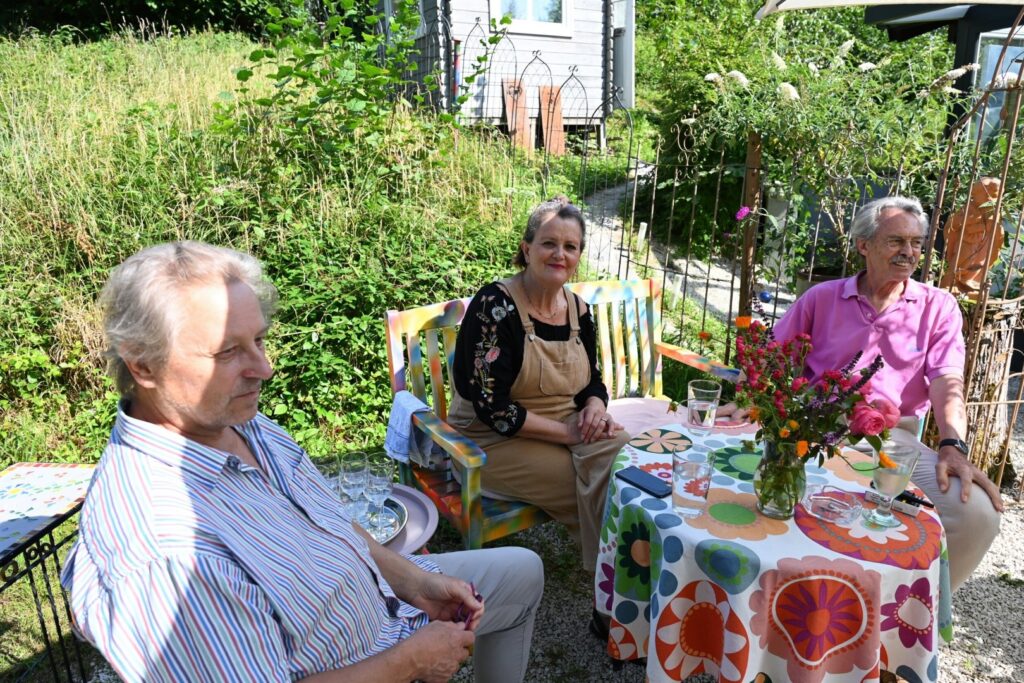 Ein Highlight der Vernissage war die Lesung aus ihrer Kurzgeschichte „Der Tag danach“. Diese Geschichte, die sie 2021 schrieb, spiegelt ihre lebensbejahende Einstellung wider und passt zum Titel der Ausstellung: „Don’t worry, be happy“. Sie handelt von einem gekündigten Grafiker, der sich aus der stressigen Werbewelt verabschiedet und ein einfacheres Leben beginnt.