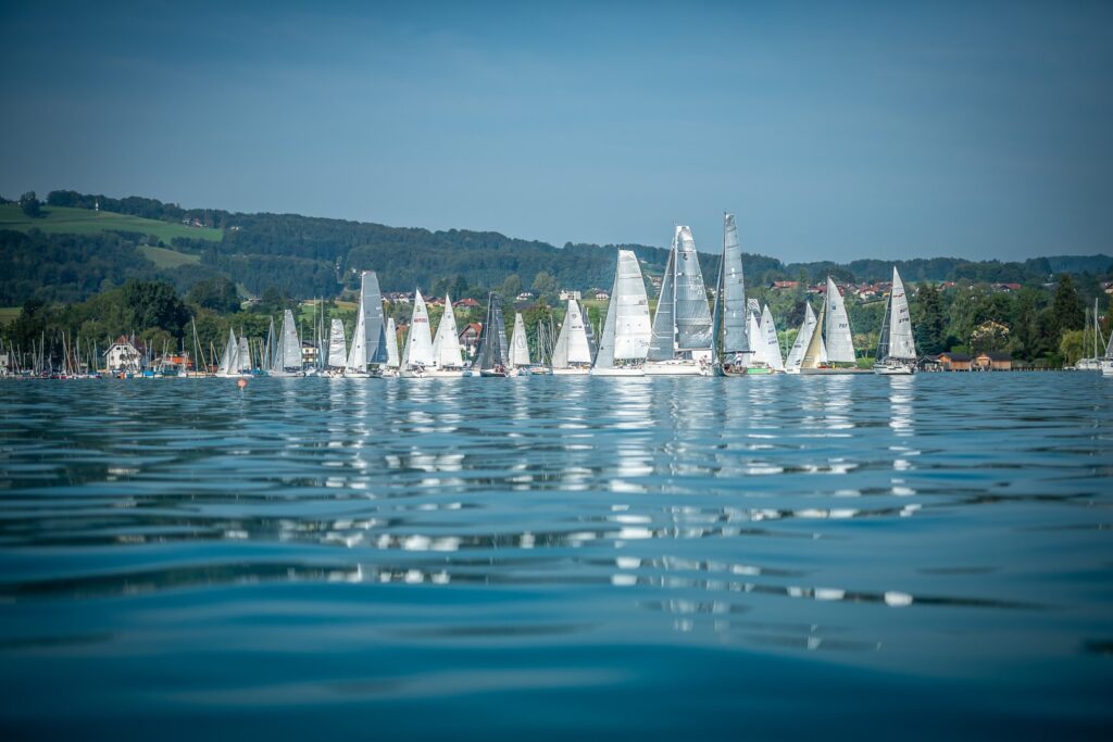 50 Boote waren an der Startlinie. Mit einem Start fast ohne Wind, dafür aber voller Sonne ging es los. Nach der anfänglichen Flaute kam dann der herbeigesehnte Rosenwind und sorgte dafür, dass alle 50 Boote innerhalb des Zeitlimits ins Ziel kamen. Das letzte Boot, eine alte First 18 war schon um 15:29 Uhr, ganze 1,5 Stunden vor dem Ende des Zeitlimits wieder in Attersee!