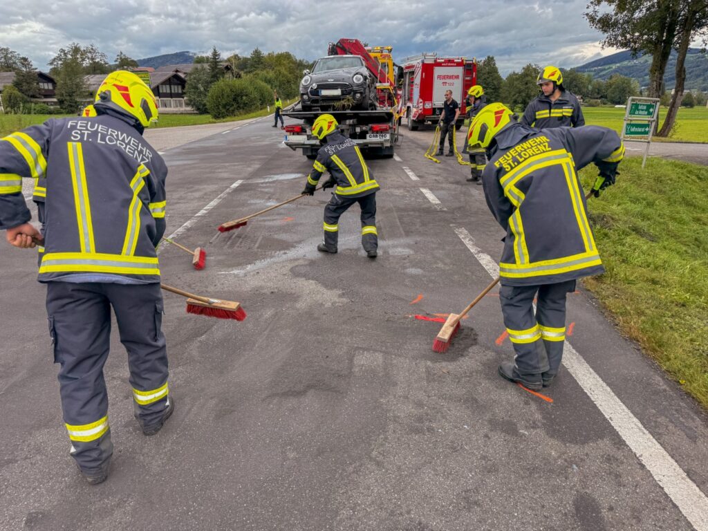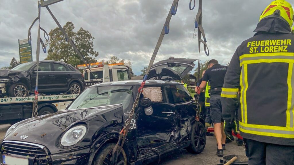 Am Montag, 9. September 2024, wurde die Freiwillige Feuerwehr Sankt Lorenz um 14.31 Uhr zu einem schweren Verkehrsunfall auf die B154 Mondsee Straße Höhe Ausfahrt Golfplatz alarmiert. Ein Lenker war mit seinem PKW von einer Seitenstraße auf die Bundesstraße gefahren und übersah dabei einen aus Mondsee kommenden anderen PKW.