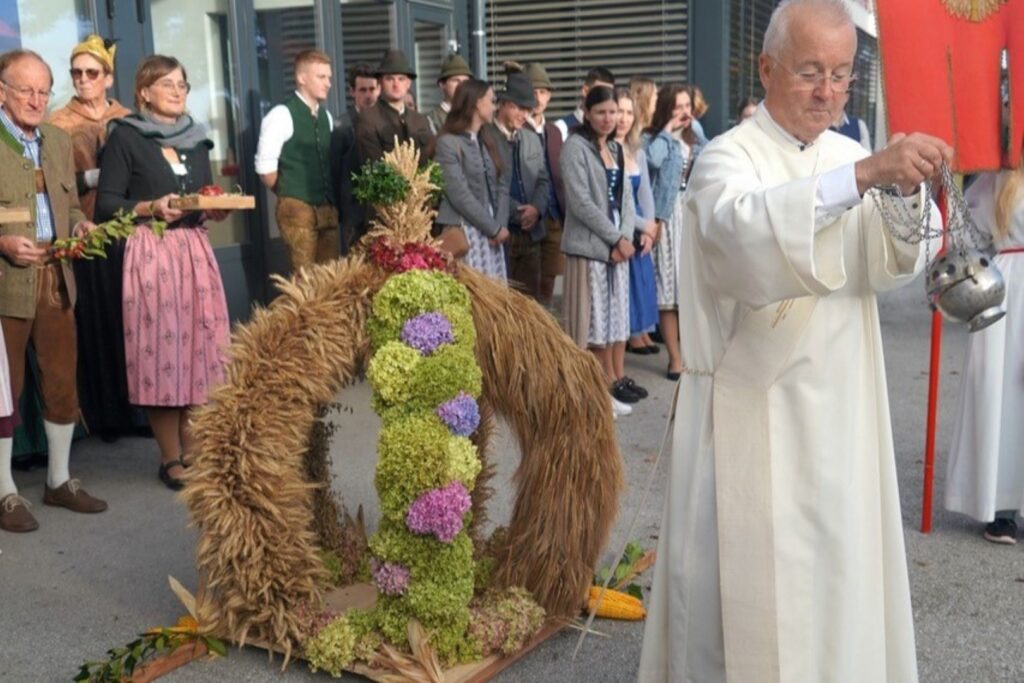 Am Sonntag 6.10.2024 fand in Gschwandt bei Prachtwetter das jährliche Erntedankfest statt. Zu dieser Danksagung lud die Pfarre Gschwandt alle Gschwandtnerinnen und Gschwandtner herzlich ein und sie kamen auch in Scharen! Treffpunkt war das Feuerwehrdepot, wo alle durch die leitende Seelsorgerin Anna-Maria Marschner und Diakon Franz Xaver Muhr herzlich begrüßt wurden. Musikalisch wurde die Festveranstaltung durch die Musikkapelle Gschwandt begleitet. Im Mittelpunkt stand die wunderschöne Erntekrone, die in unzähligen Stunden durch die Landjugend Gschwandt angefertigt wurde. Vor dem Umzug in die Pfarrkirche Gschwandt zur heiligen Messe segnete Franz Xaver Muhr noch die Erntekrone. Anschließend marschierten alle Anwesenden unter Musikklängen der Musikkapelle Gschwandt zur Pfarrkirche.
