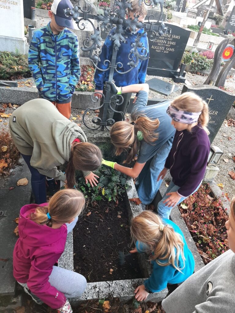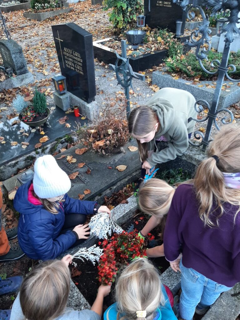 Bereits einige Tage zuvor machen sich die Pfadfinder auf den Weg zur Katrin, um bei ihrer Wanderung Tannenzweige, Moos und andere Naturmaterialien für die Gestaltung der Gräber zu sammeln. Zu Allerheiligen ehren sie dann die verstorbenen Mitglieder, die in den letzten 100 Jahren die Gruppe geprägt und zu dem gemacht haben, was sie heute ist: ein starkes Symbol für Zusammenhalt und Gemeinschaft.
