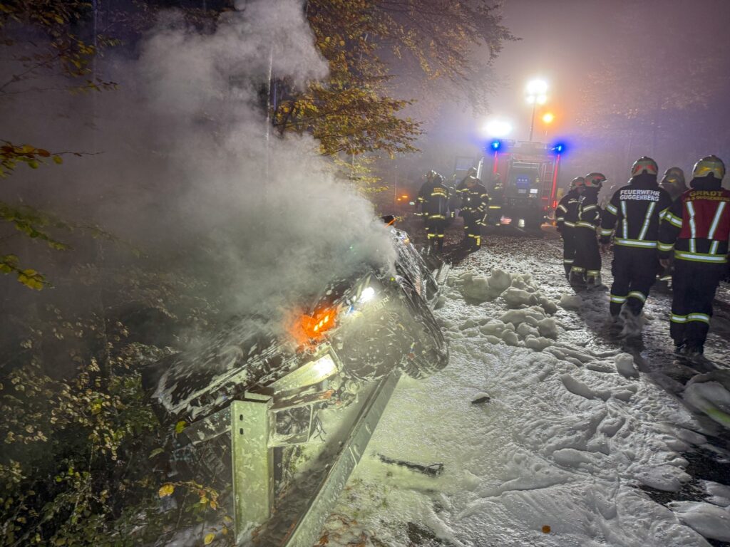 Mondseeberg: Schwerer Crash – E-Auto brennt nach Unfall