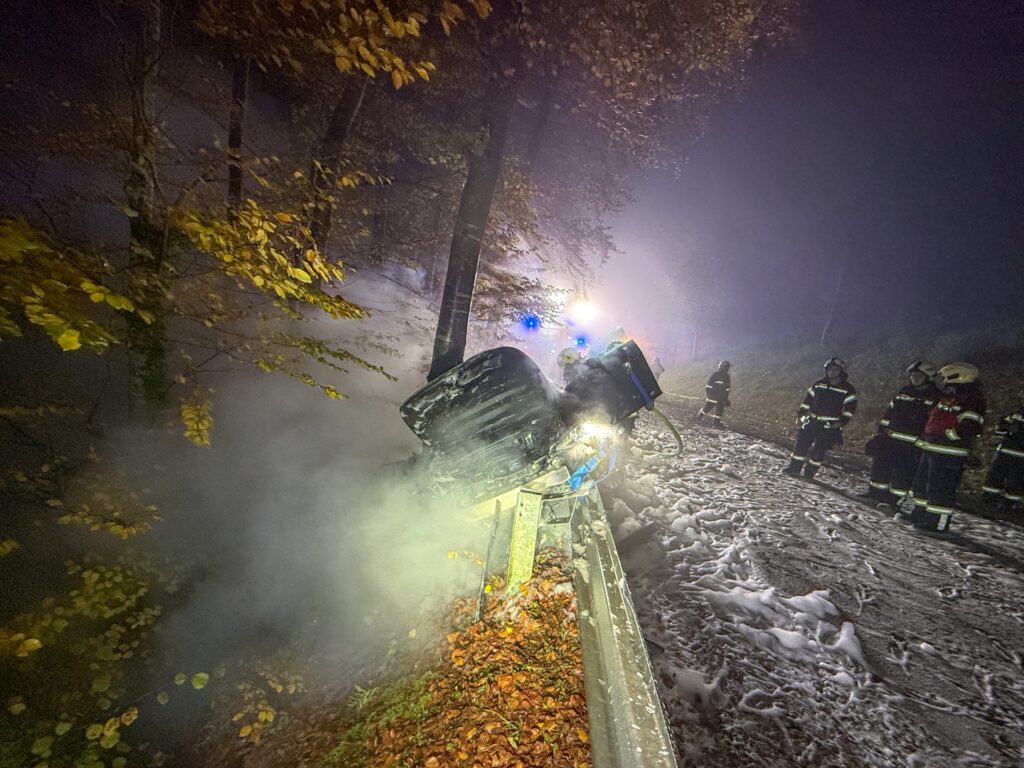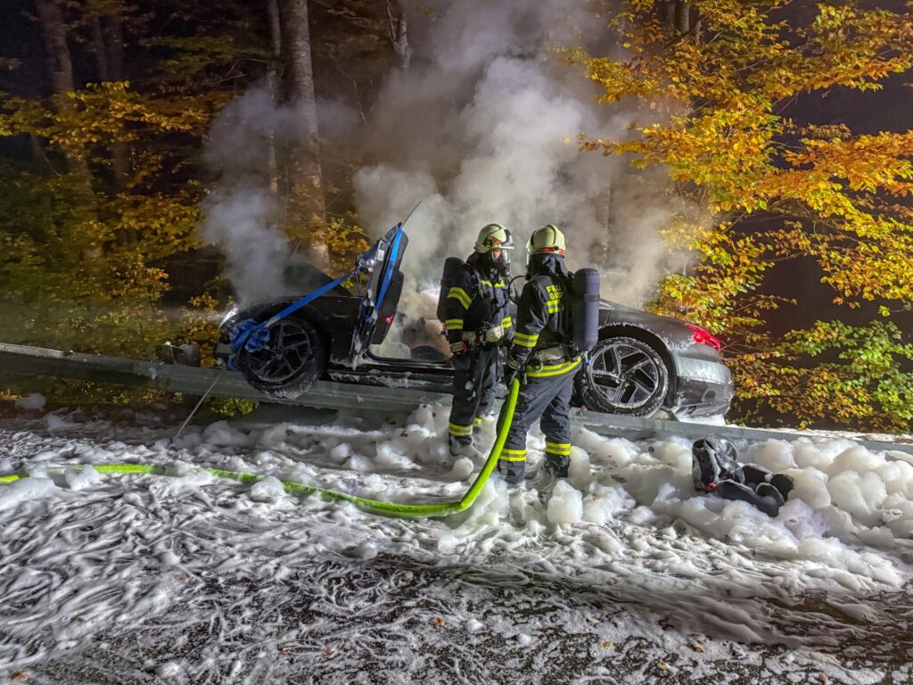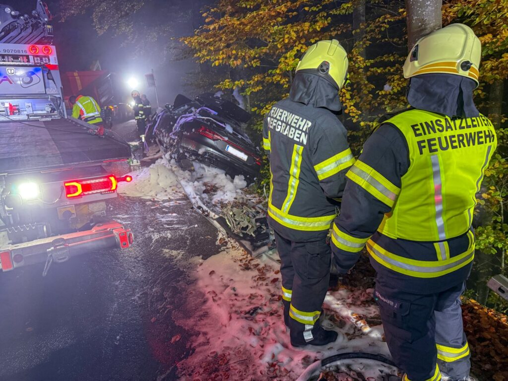 Einsatzleiter Johannes Schwaighofer von der Feuerwehr Tiefgraben berichtete von der Lage beim Eintreffen: „Als wir an der Einsatzstelle eintrafen, stellte sich heraus, dass es sich nicht um einen gewöhnlichen Fahrzeugbrand handelte. Vor dem Brandausbruch war das Fahrzeug schwer verunfallt!“