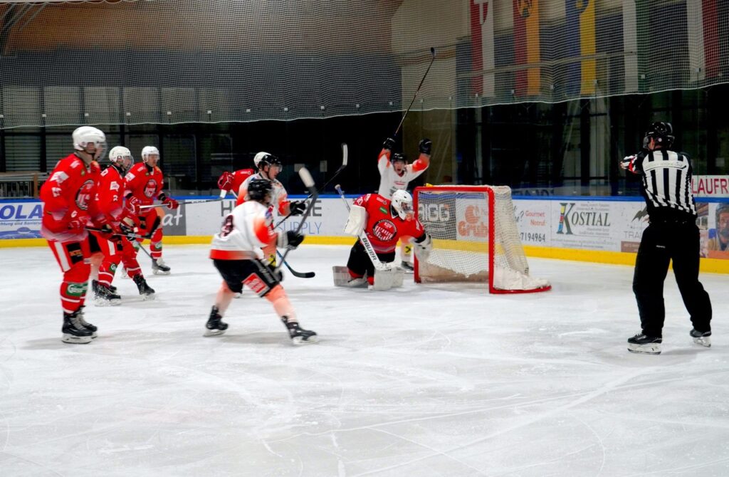 Nur eine Minute nach Beginn des dritten Spielabschnittes musste ein Shark für 2 Minuten in die Kühlbox. Das Powerplay nutzte Kapfenberg durch P- GRAF zum Ausgleich 3:3. Das Match nahm an Geschwindigkeit zu. In Minute 42:43 nahm sich Paul ORNETZEDER ein Herz zog ab und versenkte im Alleingang die Hartgummischeibe zum 4:3 im Tor der Gäste. Die Fans auf den Rängen waren aus dem Häuschen und peitschten die Shark nach vorne. In der 54. Spielminute ein Idealpass von Patrick GAFFAL kam bei Pauul ORNETZEDER an und der zog ab und erledigte so das 5:3 für die Cam4Dent Sharks Gmunden. Logische Folge war die Herausnahme des Torhüters bei Kapfenberg und die schafften mit 6 Mann tatsächlich 2 Minuten vor Schluss den Anschlusstreffer zum 5:4. Mit letzten Willenskraft wurde das Tor von Luka GRACNAR verteidigt und mit Ertönen der Schlußsirene war es geschafft. Der Vorjahresmeister war auf heimischem Eis mit 5:4 besiegt. Dies bedeutete 2 Siege in zwei Spielen, also 6 Punkte und Tabellenführung in der ÖEL Eishockeyliga Ost vor Neueinsteiger HDK Maribor. Der Jubel im Haifischbecken Gmunden war sowohl bei den Fans als auch beim gesamten SHARKS Team groß. Spieler des Tages wurde bei den Sharks Paul ORNETZEDER mit seiinen zwei Treffern.