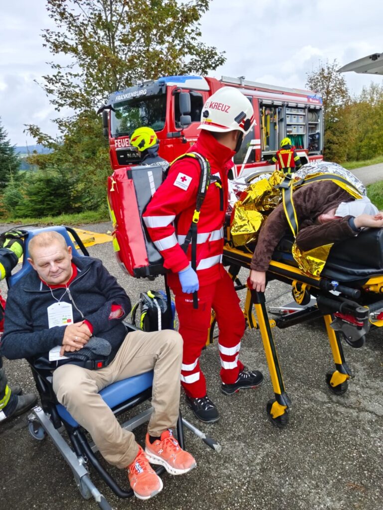 Zum zweiten mal führten die Feuerwehr und das Rote Kreuz Frankenburg einen gemeinsamen Übungstag durch. In drei Szenarien übten 40 Einsatzkräfte die Zusammenarbeit im Ernstfall. Neben einem Brand in einer Werkstatt mussten ein schwerer Verkehrsunfall mit sieben verletzen Personen, ein Kleinbrand und ein Kohlenmonoxid Austritt bewältigt werden. Als Statisten wirkten unter anderem Ehrenkommandant Horst Eder sen., Vizebürgermeister Hubert Peiskammer und Gemeindevorstandsmitglied Sigrid Koberger mit.