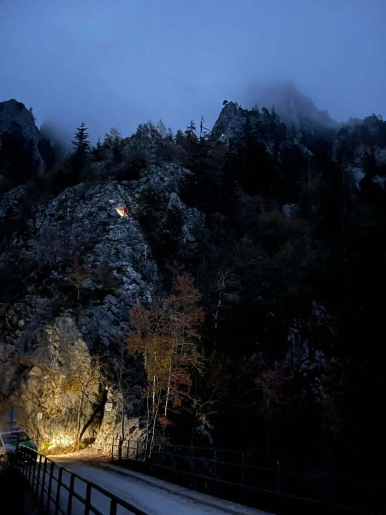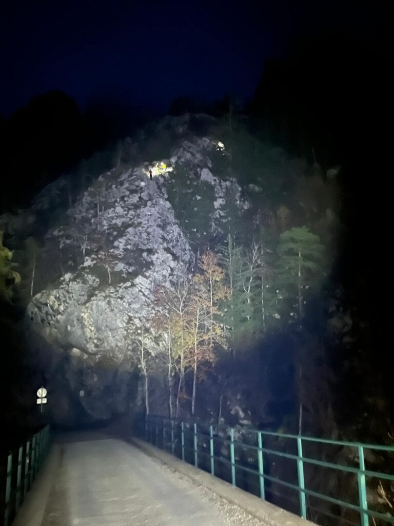 „Unmittelbar nachdem wir den ersten Einsatz abschlossen erreichte uns gegen 18:30 Uhr die nächste Alarmierung. Am Naturfreundesteig erlitt eine 30-jährige Frau eine Knöchelverletzung. Wir stiegen einige hundert Höhenmeter auf und konnten die Frau dann nach dem Einbruch der Dunkelheit sicher ins Tal geleiten.