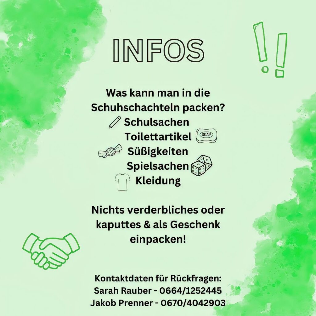 Die Mitglieder der Landjugend Altmünster sind für ihr ehrenamtliches Engagement bekannt. Auch heuer möchten sie wieder einen Beitrag leisten und haben sich daher entschlossen, wieder an der Aktion „Christkindl aus der Schuhschachtel“ teilzunehmen.