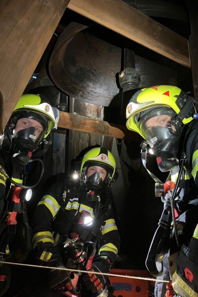 Als Einsatzbefehl wurde von der Übungsleitung „Brand Kirchturm mit vermisster Person“ gemeldet. Umgehend rückten die Florianis zum Übungsort aus. Dort angekommen, bereiteten sich zwei Atemschutztrupps vor, wovon der erste mit einer Schlauchleitung den Kirchturm hinaufstieg und den Brandherd suchte. Währenddessen machte der zweite Trupp sich mittels Wärmebildkamera auf den weg, und begann die Personensuche. Besonders erschwerend war die schmale und steile Treppe den Turm hinauf, wobei immer ein besonderes Augenmerk auf das Schlauchmanagement gelegt werden musste.