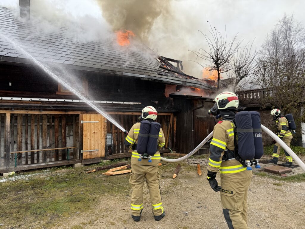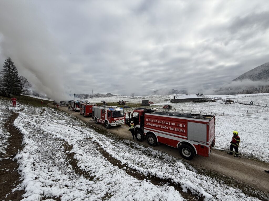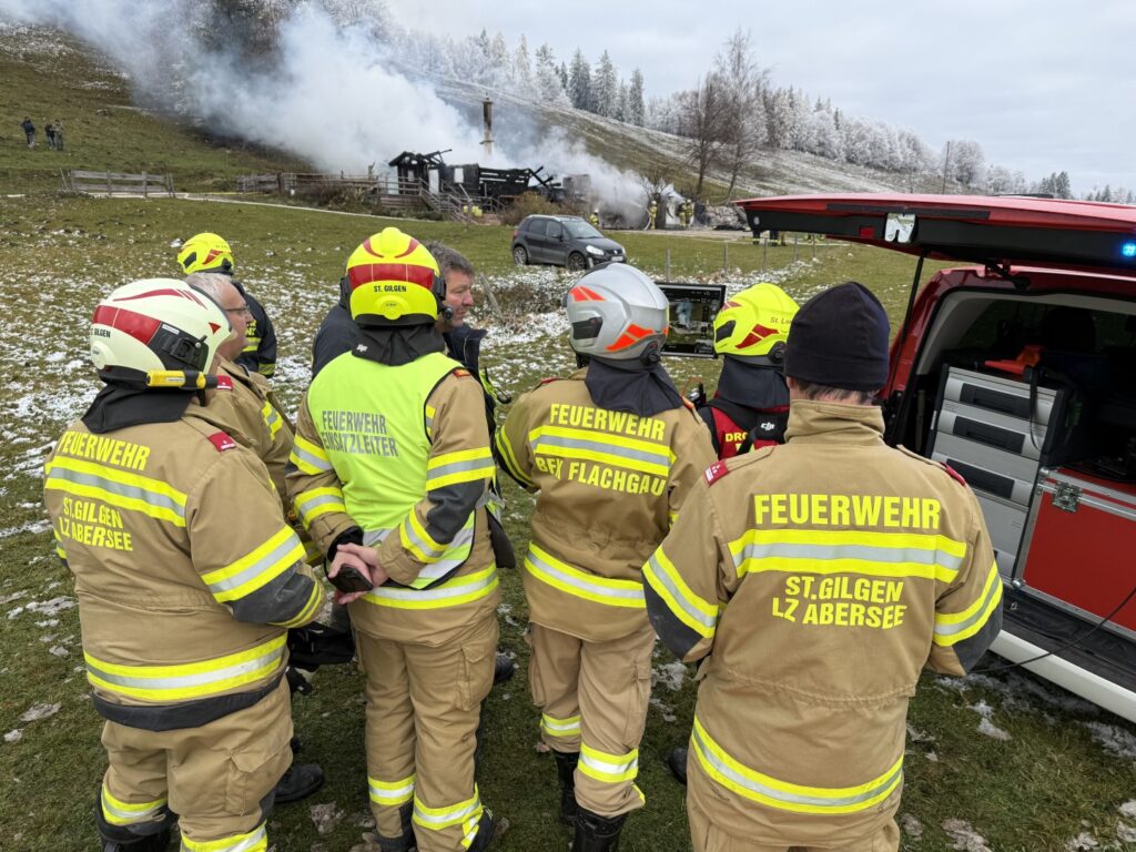 Der Unteracher Kommandant Walter Höllermann sah ein schwarze Rauchsäule von seinem Wohnhaus in Unterach aus und alarmierte die Feuerwehren. Einsatzleiter Christopher Fischer von der Feuerwehr Sankt Gilgen schilderte die Lage: „Bereits bei der Anfahrt war die schwarze Rauchsäule sichtbar. Nach kurze Lageerkundung alarmierte ich aufgrund des Wassermangels weitere Feuerwehren und Tanklöschfahrzeuge nach!“