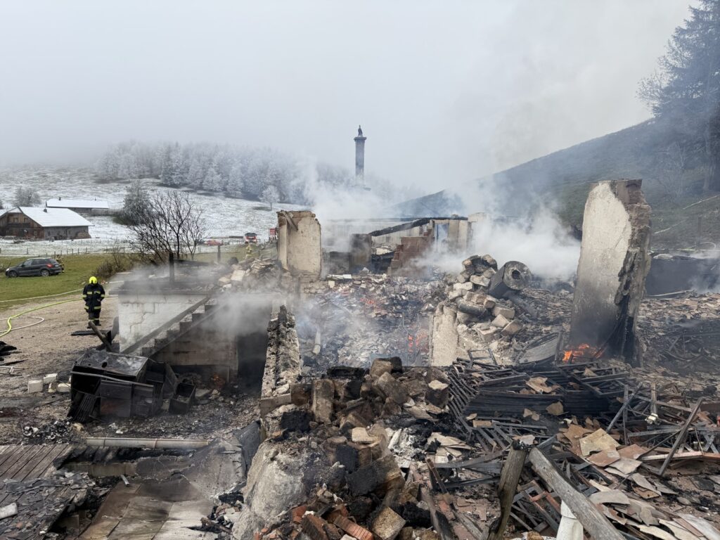 Die Buchberghütte wurde völlig zerstört. Personen kamen keine zu Schaden. Zur Stunde laufen die aufwändigen Nachlöscharbeiten. Die 103 eingesetzten Feuerwehrleute wurden mit Baggern und Kränen unterstützt, um die eingestürzten Hüttenteile zu entfernen und so an die Glutnester zu kommen.