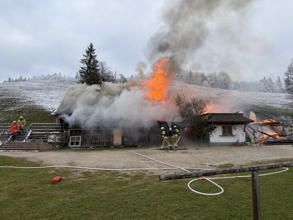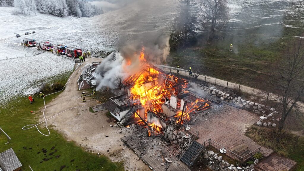 Donnerstagfrüh wurden die Feuerwehren Sankt Gilgen und Unterach zu einem Brandverdacht auf die Eisenaualm unterhalb des Schafbergs alarmiert. Nahezu zeitgleich trafen die Kommandanten aus Unterach und Sankt Gilgen auf der Alm ein. Beim Eintreffen stand die Buchberghütte bereits in Vollbrand.