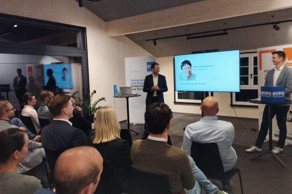 Anschließend hielt Mag. Klaus Kumpfmüller einen inspirierenden Impulsvortrag zur Entwicklung des Bankensektors und zu aktuellen Finanztrends. Mit seinem fundierten Wissen zog er das Publikum in seinen Bann und lieferte wertvolle Einblicke in die zukünftigen Herausforderungen und Chancen der Finanzwelt. Im Anschluss stand Mag. Kumpfmüller den Jungunternehmer für eine lebhafte Fragerunde zur Verfügung, die er mit seiner Expertise umfassend beantwortete.