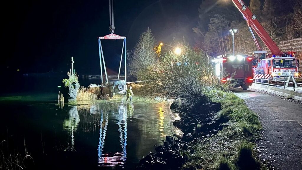 In den frühen Morgenstunden des 02. Novembers 2024 wurden die Feuerwehr Au-See und die Feuerwehr St. Gilgen zu einem Verkehrsunfall im Bereich des „Kreuzstein“ alarmiert. Ein SUV war aus ungeklärter Ursache von der Fahrbahn abgekommen und stürzte daraufhin in den Mondsee. Die Insassen konnten sich eigenständig aus dem Fahrzeug befreien und wurden durch das Rote Kreuz versorgt.