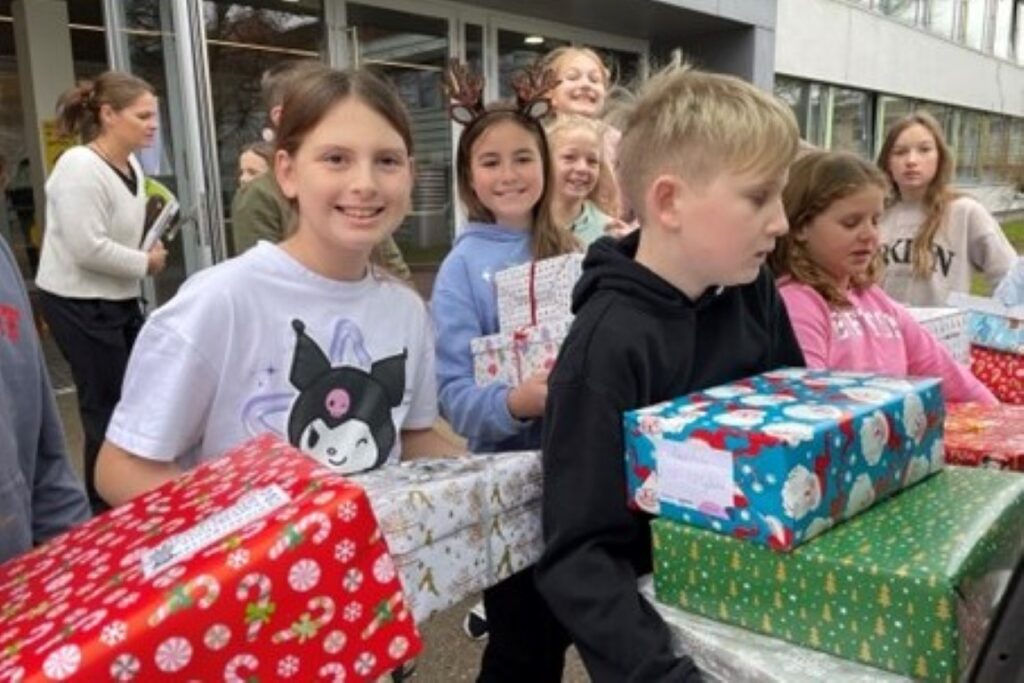 Auch in diesem Schuljahr haben die Schülerinnen und Schüler des BG Vöcklabruck ihre Herzen aufgemacht und unterstützten eifrig die Aktion „Christkindl aus der Schuhschachtel“ der oberösterreichischen Landlerhilfe. Erstmals wurde dem BG durch fleißiges Packeln packen von der Volksschule in Zell am Moos geholfen. Zusammen haben wir es geschafft, über 260 Weihnachtsgeschenke für hilfsbedürftige Kinder in Rumänien und der Ukraine zu schnüren und ihnen somit ein frohes Weihnachtsfest zu ermöglichen. Bei weihnachtlicher Atmosphäre und durch Kekse und Punsch gestärkt ist auf jeden Fall auch bei uns weihnachtliche Vorfreude aufgekommen.