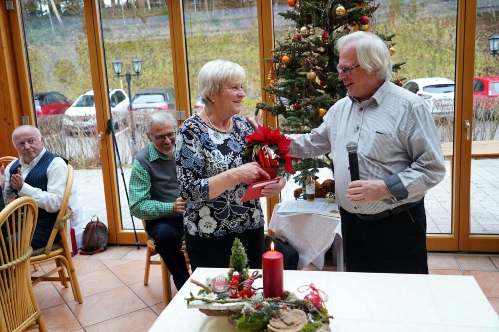 Mit musikalischer Begleitung durch Walter Rennhofer und Gedichte und „Gschichtln“ vorgetragen von Erna Binder und Herbert Roithner ging es durch den Nachmittag. Natürlich richteten auch Bgm. Steindl und Pfarrer Alois Kainberger einige Worte an die anwesenden Gäste. Mit etwas Wehmut kam auch Bez. Vorsitzender Gerhard Mayer zu Wort. „Es ist heute meine letzte Weihnachtsfeier in meiner Funktion als Vorsitzender unserer Vereinigung, da ich ab kommenden Jahr in den „Pensionistenverbandsruhestand“ trete. Es war, speziell bei euch Freunden und dies ist ehrlich gemeint, hier in Gschwandt immer ein schöner und gemütlicher Ausflug. Obwohl es eine „fast Weltreise aus Gosau hierher nach St. Konrad“ war, bin ich immer gerne zu euch gekommen und fühle mich sehr wohl bei euch. Aber alles hat ein Ende und dies passt auch so!“ so die Worte von G. Mayer.
