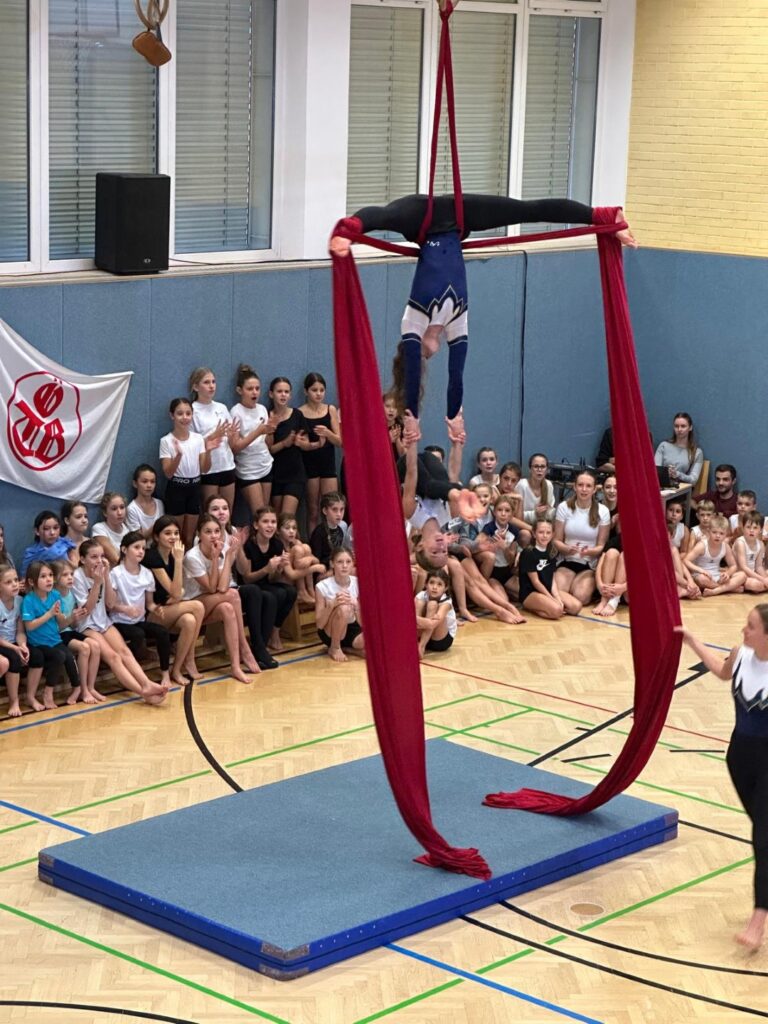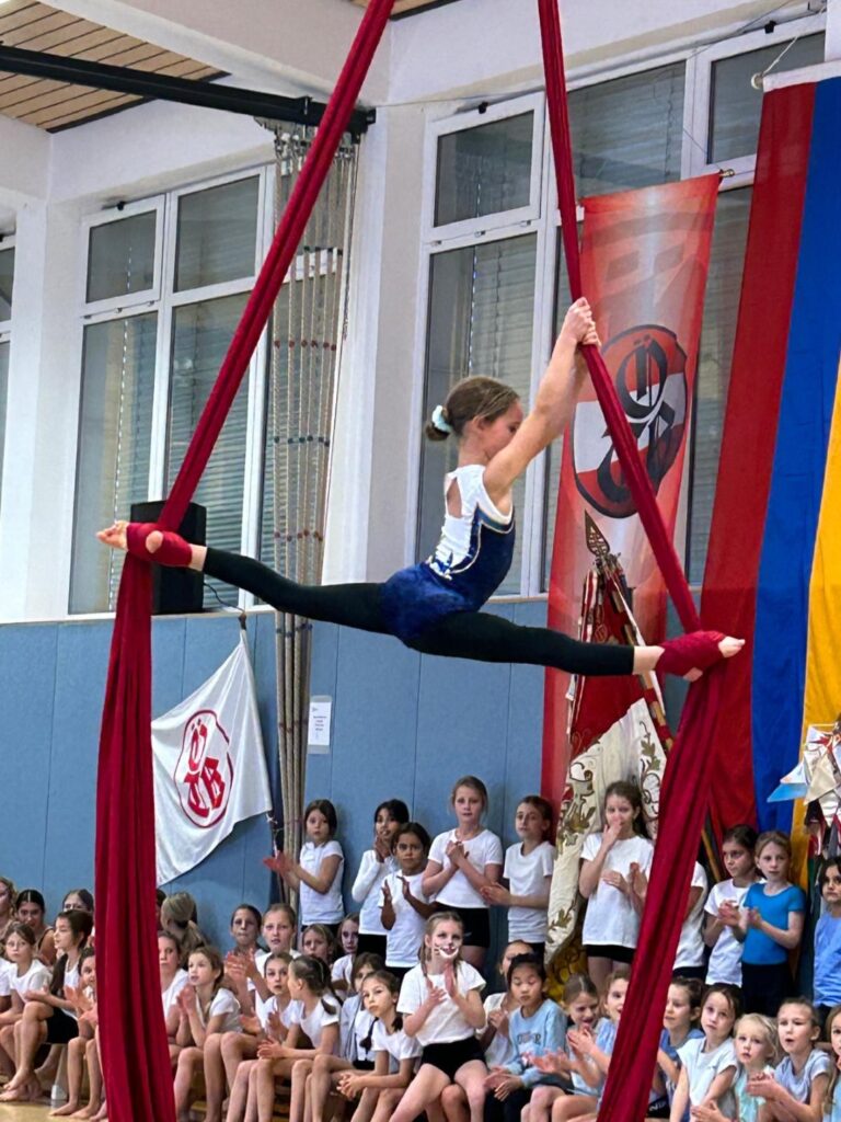 Besonders beeindruckend war auch die Vorführung der Vertikaltuch Turnerinnen, die mit tollen Partnerübungen und „Drops“ begeisterten.