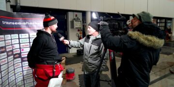 Und die Partie ging mit allen was zu einem richtigen Eishockeyspiel gehört weiter. Harte aber Großteils faire Körperchecks, Power Plays und rollende Angriffe bis zum Ende! In der 51. Spielminute dann eine Kombination Adrian Rosenberger zu Laurens Ober und weiter an Marc Andre’ Dorion, der den Puck im linken Kreuzeck präzise unterbringt. 4:1 für die Cam4Dent Sharks Gmunden. Trotz Herausnahme des Gastgoalie fiel kein Treffer mehr und so gehen weitere 3 Punkte an die Gmundner Haie, die mit stolzen 22 Punkten die Tabelle in der ÖEL anführen. Platz 2 geht an den WEV (der gewinnt zu Hause heute gegen Maribor mit 5:2 Tore) mit 18 Punkte und KSV mit 15. Punkte. 4. Maribor 8 Zähler und 5. Platz ATSE Graz abgeschlagen mit 3 Punkte.
