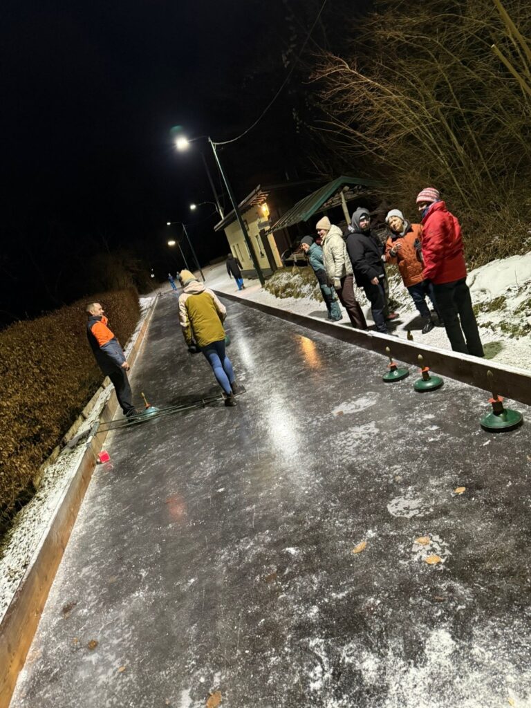 Die Stimmung war von Anfang an hervorragend, und die Begeisterung der Teilnehmer war förmlich spürbar. In insgesamt neun Kehren wurde um jeden Punkt gekämpft, wobei die ältere Generation letztlich mit einem knappen Ergebnis von 5:4 die Oberhand behielt. Die junge Mannschaft zeigte jedoch großen Einsatz und beeindruckte mit Technik und Teamgeist – eine echte Herausforderung für die erfahrenen Eisstockschützen.