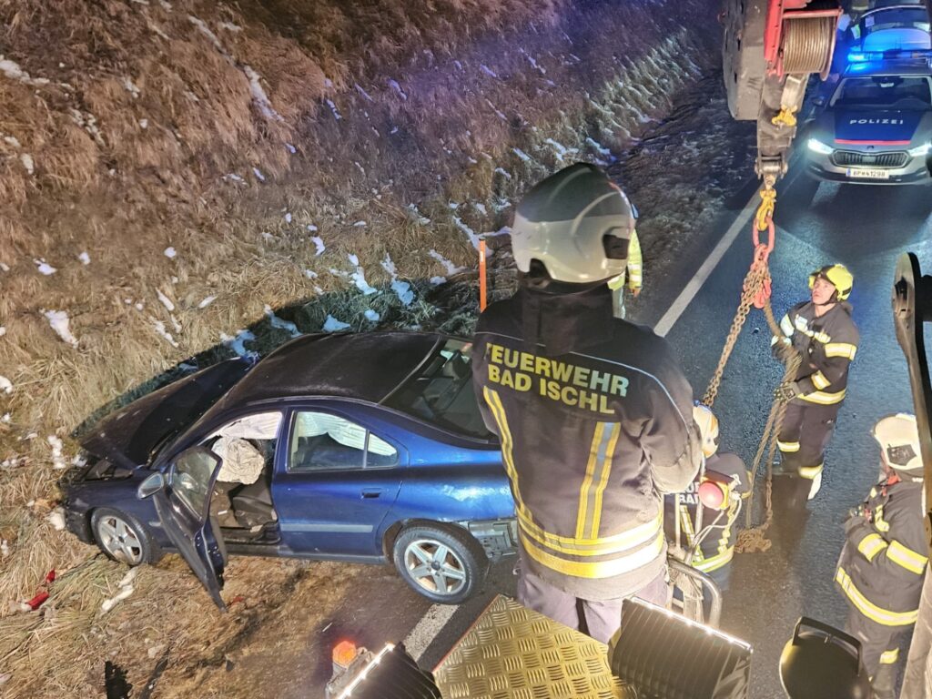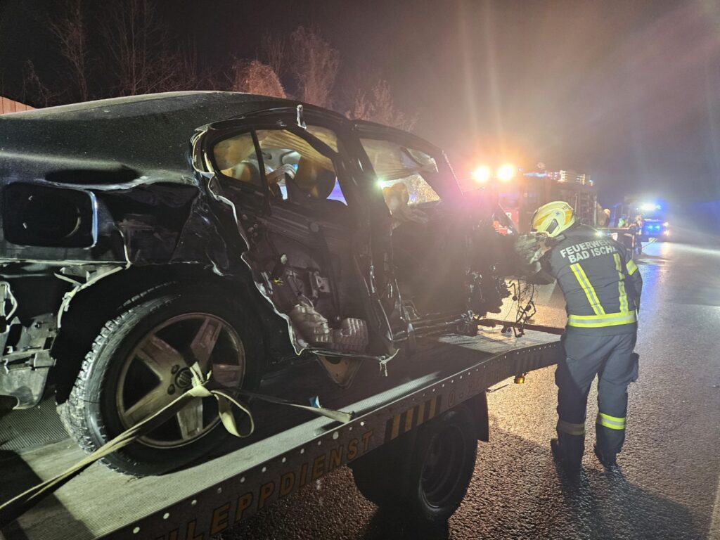 Im Einsatz standen die Freiwillige Feuerwache Rettenbach, die Hauptfeuerwache Bad Ischl, das Rote Kreuz mit einem Sanitätseinsatzwagen, eine Streife der Polizei Bad Ischl und ein Abschleppunternehmen. (Quelle: FF Bad Ischl)