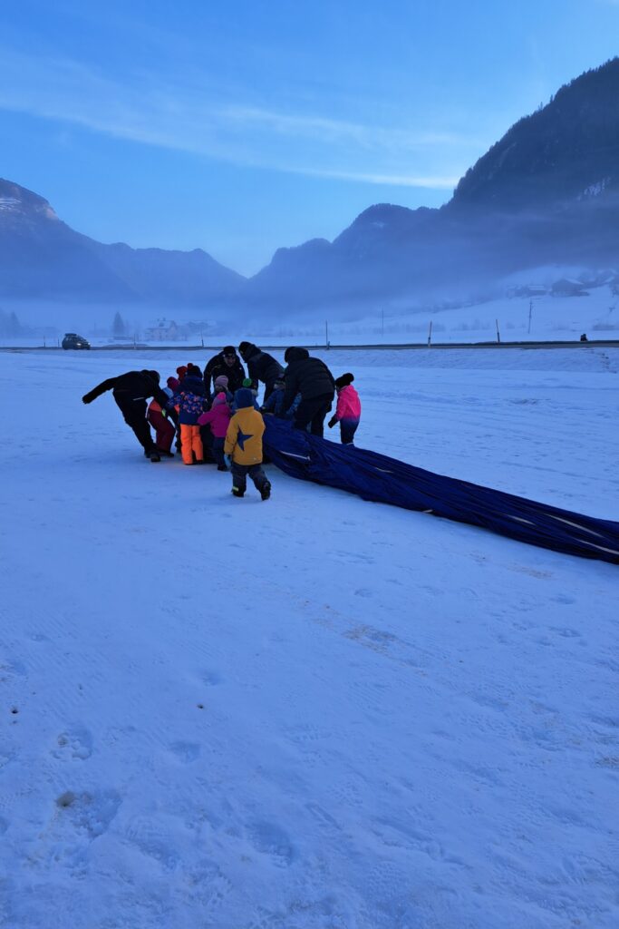 Gosau, 27. Jänner 2025. Vom 18. bis 25. Jänner 2025 gehörte der Himmel über Gosau den großen Abenteurern der Lüfte. Heißluftballonfahrer:innen aus aller Welt trafen sich auch dieses Jahr wieder zur internationalen Alpentrophy, um ihr Können unter Beweis zu stellen. Und wo sich die großen Ballonfans dieser Welt treffen, dürfen die ganz Kleinen natürlich nicht fehlen. Deshalb machte sich eine Gruppe an Kindern des evangelischen Kindergartens Gosau auf zum Startplatz der bunten Luftgiganten.