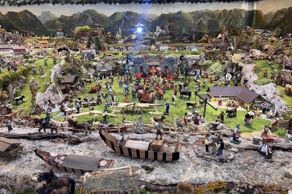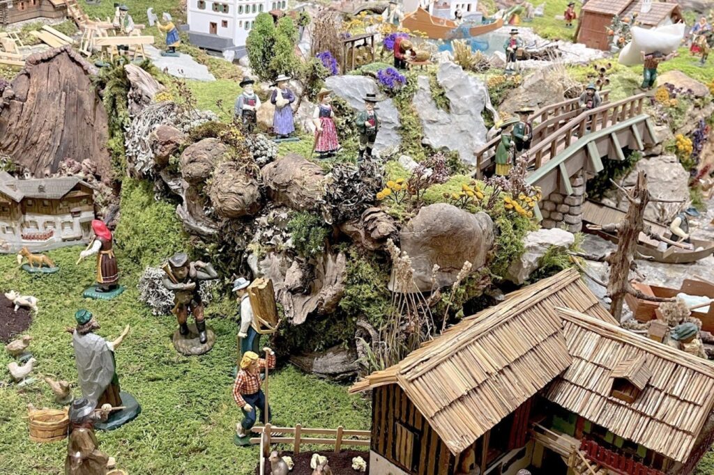 Noch war es möglich des Krippöschaun in Ebensee. Und das nützten wir am Montag 27.1.2025. Unsere acht köpfige Gruppe machte sich auf den Weg, der uns als erste Station zur Familie Franz Stüger vulgo Ka°librenner Krippe in der Heisslfeldsiedlung führte. Franz Stüger begrüßte uns recht herzlich und führte uns in Richtung seiner Krippe. Im Vorraum waren in liebevoll gestalteten Vitrinen Stationen das Krippengeschehen aufgebaut und dann öffnete sich die Tür zur wohl größten Krippe des Salzkammergutes. Unbeschreiblich was der Krippenvater in mühevoller Kleinarbeit in 3-4 Wochen geschaffen hat. Ca. 900 Figuren und Tiere haben in der Krippe Platz gefunden. Auch viele Häuser und Hütten des Salinenortes fanden ihren Platz und wurden uns von Franz namentlich genannt. Die typischen Figuren einer Salzkammergut Krippe incl. der Salzschiffer auf der Traun, der Arbeiter im Salzbergwerk, der Salinenkapelle, Holzfäller, Vogelfänger und viele mehr sind in der Krippe zu finden! Man könnte stundenlang schauen und findet immer wieder Neues. Nach dem Eintrag im Krippenbuch und einem guten Krippöschnapserl ging die Kripperlroas weiter.