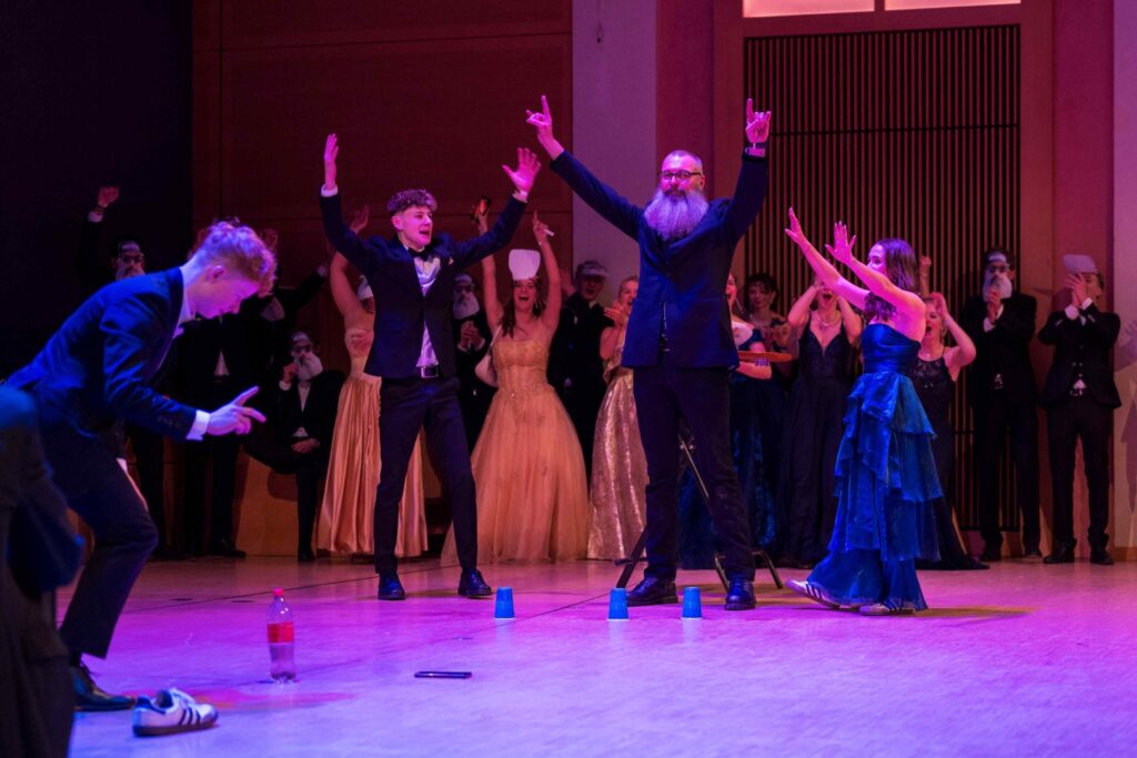 Die beiden 8. Klassen des Gymnasiums feierten mit einer rauschenden Ballnacht viele erfolgreiche Schuljahre und den nahenden Abschluss ihrer Schulkarriere. Die 41 Maturakandidat:innen der 8A und 8B planten über Wochen hinweg intensiv, um dieses Großevent auszurichten. Die Highlights des Abends waren eine aufwändige Polonaise unter der Regie von Manuel Lemmerer, eine lustige 10-Uhr-Show bei der seitens der Klassenvorstände Wissen und Geschick gefragt waren, sowie eine fulminante Mitternachtseinlage der Schüler:innen. Insgesamt war es ein sehr gelungener und gut besuchter Ball mit einer angenehmen Atmosphäre und mitreißender Livemusik, der uns noch lange in Erinnerung bleiben wird.