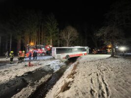 Am Sonntagabend kam ein Linienbus auf der L549 bei Scharnstein von der Straße ab und blieb über einem kleinen Bach hängen. Der Fahrer und der einzige Fahrgast erlitten Verletzungen unbestimmten Grades und wurden in umliegende Kliniken gebracht.