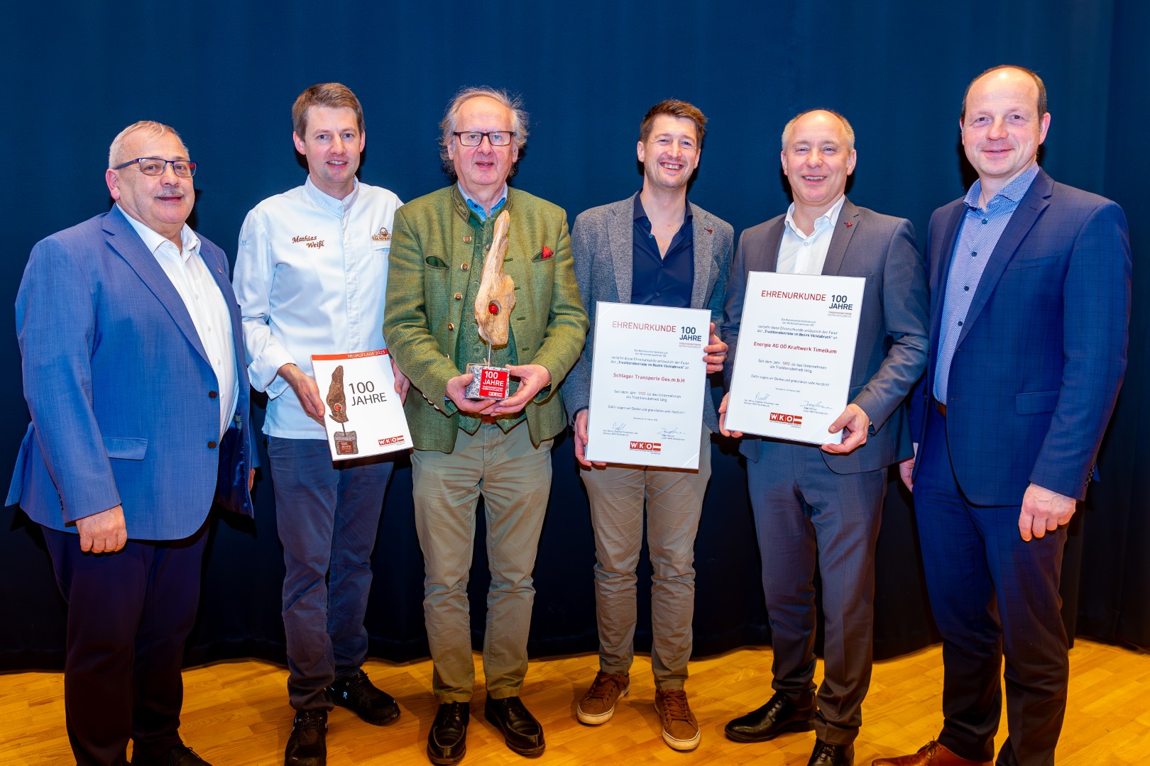 Die Bezirksstelle Vöcklabruck hatte für jeden ausgezeichneten Betrieb nicht nur ein Unikat einer Trophäe aus Schwemmholz, Stein und Metall vorbereitet, sondern auch ein 150 Seiten starkes „Traditionsbuch, in dem alle Betriebe des Bezirks, die älter als 100 Jahre sind, vorgestellt werden. „Es ist die Geschichte dieser Unternehmen und es sind die Geschichten dieser Betriebe, die hier erzählt werden – sie prägen die Wirtschaft in unserem Bezirk und sollen vor den Vorhang geholt werden“, sagt Josef Renner, Leiter der WKO Vöcklabruck. Posthum mit der Wirtschaftsmedaille der WKOÖ wurde bei dieser Veranstaltung auch das Autohaus Scheinecker ausgezeichnet. Manfred Scheinecker, der die Medaille hätte bekommen sollen, war kurz vor der geplanten Überreichung verstorben.