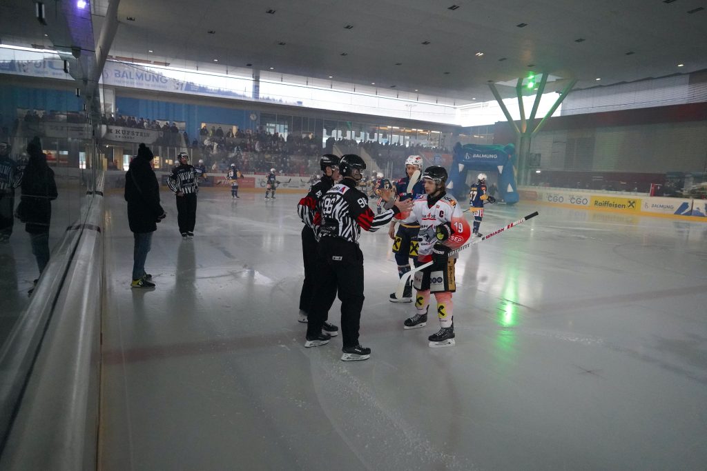 Der Traum wurde Wirklichkeit. Am Samstag 15.2.2025 mussten die UEHV Cam4Dent Sharks Gmunden im zweiten Viertelfinalspiel der ÖEL – österreichischen Eishockeyliga auswärts beim HC KUFSTEIN/Tirol antreten. Nach der 0:4 Niederlage im Heimspiel letzte Woche war dies eine kaum lösbare Aufgabe beim Tabellenzweiten der Westgruppe im Grunddurchgang. Bei einer gewaltigen Zuschaueranzahl von knapp 1200 Eishockey begeisterter Fans, darunter auch die treuen Fans der Gmundner Haie betraten beide Mannschaften das Eis.