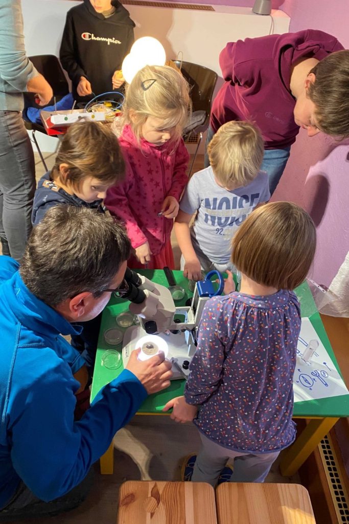 Kids von 5 bis 7 können sich nach Herzenslust bei verschiedenen Experimentierstationen austoben und in zur Thematik passenden Büchern schmökern.